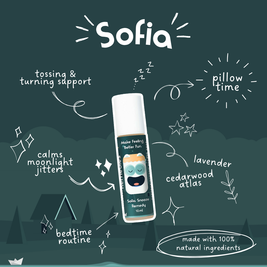Sofia Snooze is the ultimate bedtime support rascal. Formulated to help gently calm moonlight jitters and pillow-time toss and turn, simply roll onto back, chest, and feet bottoms 20-30mins before lights out.