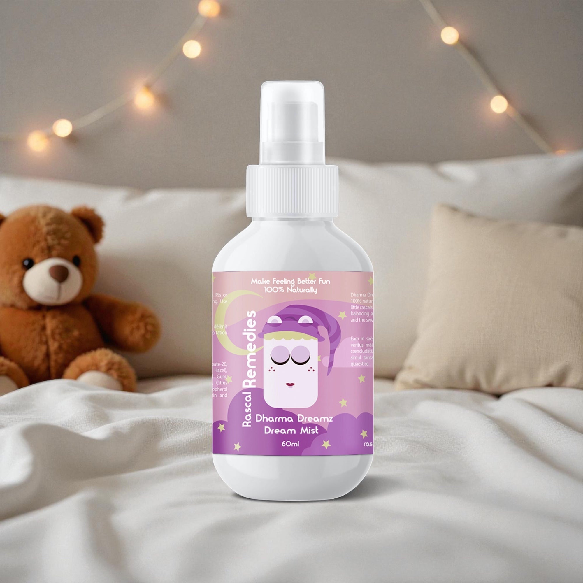 Each of our Mists are formulated to help support rascals during their day. Finn Focus helps your rascal boost their attention, effort and concentration. A thunderclap to break through mental fog. Dharma Dreamz helps gently support mental calm and/or ease rascals into slumber. A mellow spritz to welcome galactic quiet and twinkly dreams.